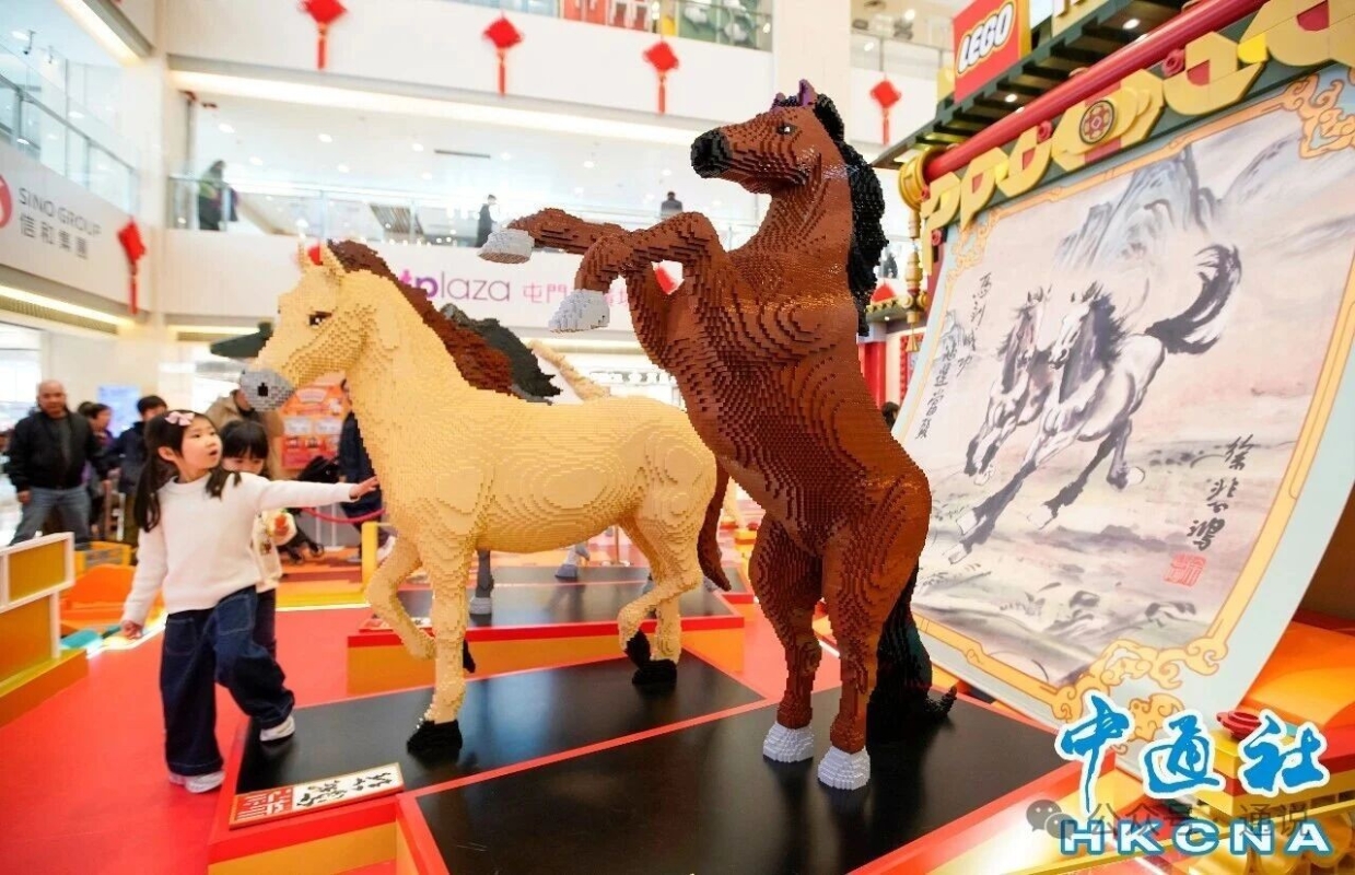 香港屯門市廣場聯乘LEGO香港共同打造新春駿藝樂園,以LEGO顆粒重現“近代中國國畫之父徐悲鴻大師”的經典作品《六駿圖》,透過近40萬粒顆粒砌出兩組巧奪天工、磅礴奔騰的駿馬藝術作品,象征新一年馬到功成!