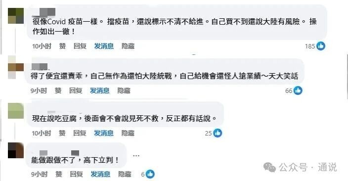 數據和圖片源自通傳媒。數據截止時間為2026年3月4日16點30分。 在這條點贊將近3000,評論超700的帖子的評論區裡,台灣網友紛紛發表看法。 對於台當局“自己不救還不讓大陸救”的行為,網友表示,“很像新冠疫情的時候。(民進黨)擋疫苗,還說標示不清不給進。自己買不到還說大陸有風險。 操作如出一轍!”“得了便宜還賣乖,自己無作為還怕大陸‘統戰’,自己給機會還怪人‘搶業績’,天大笑話。”“現在就說吃豆腐,後面會不會說見死不救,反正都有話說。”