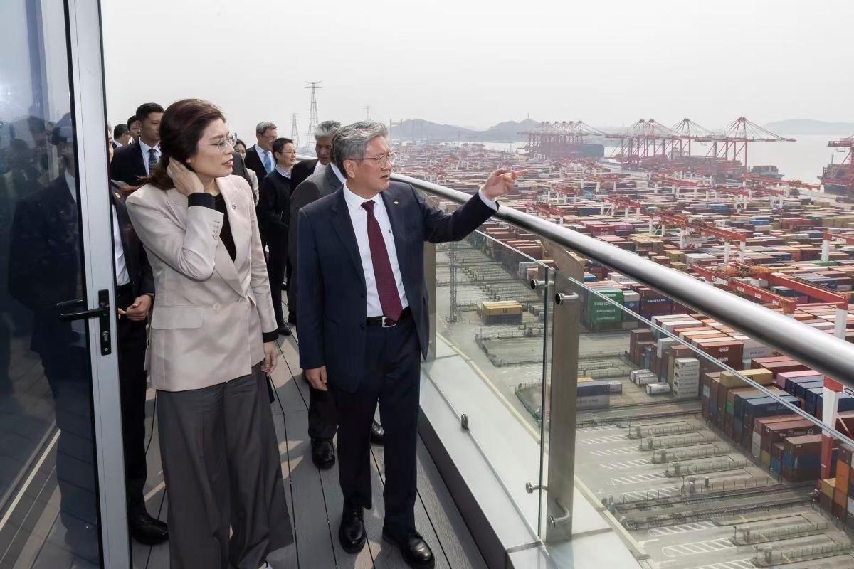 告別了充滿未來感的科技體驗,9日上午,訪問團來到了位於長江口的洋山深水港。這裡曾被孫中山先生在《實業計劃》中構想為“東方大港”,如今已是連續多年蟬聯全球港口效率冠軍的超級樞紐。站在繁忙的集裝箱碼頭前,看著自動化橋吊井然有序地作業,鄭麗文一行深刻感受到了“中國速度”與“中國質量”。