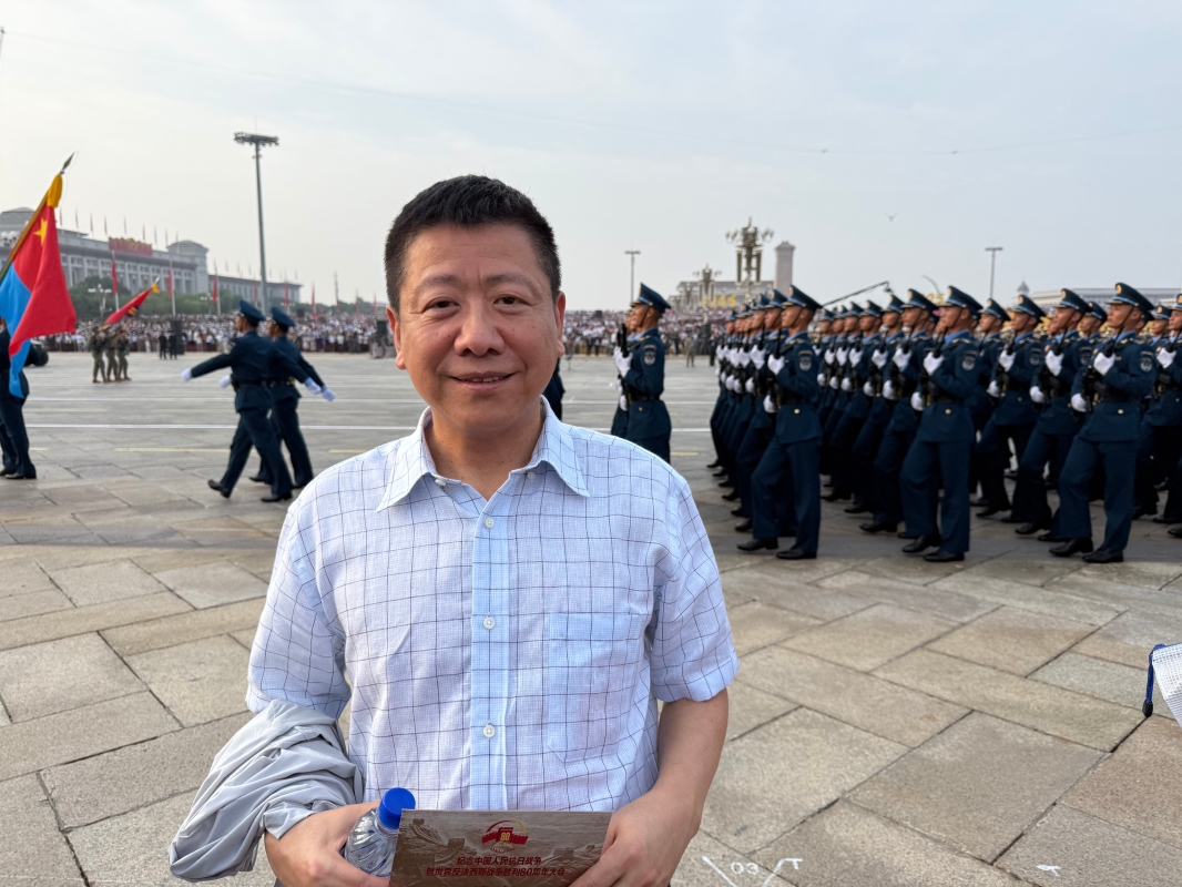 作者有幸作為香港代表團成員,親歷此次閱兵儀式。(作者供圖) 清晨的陽光灑在天安門廣場,當受閱方隊邁著鏗鏘有力的步伐走過,鐵甲洪流裹挾著時代的厚重感緩緩駛過,我耳邊仿佛響起80年前中華兒女抗擊日寇的吶喊。那些整齊的佇列,不僅是國家國防實力的直觀展現,更是對無數抗戰先烈的莊嚴致敬——正是他們以“一寸山河一寸血”的犧牲,用14年浴血奮戰換來了民族獨立與尊嚴。