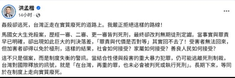 台男殺害大馬女生僅判無期 藍委:不被信任的司法是台最大危機