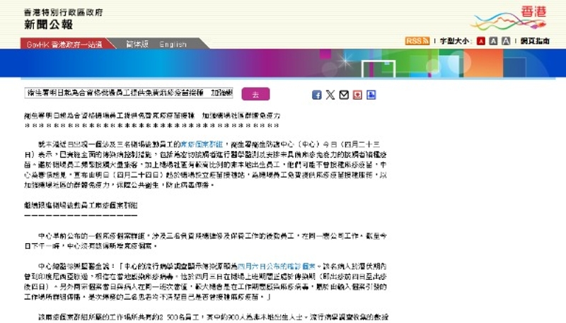 - 04-23香港衛生署明起為合資格機場員工提供免費麻疹疫苗接種