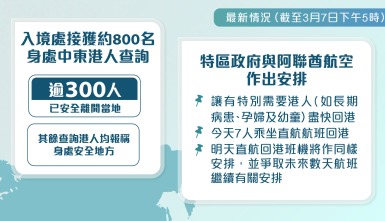 - 03-10約450名港人安全離開中東 20人獲政府安排機位