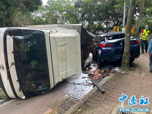 台灣一貨車煞車失靈撞2車後翻覆 3人受傷送醫