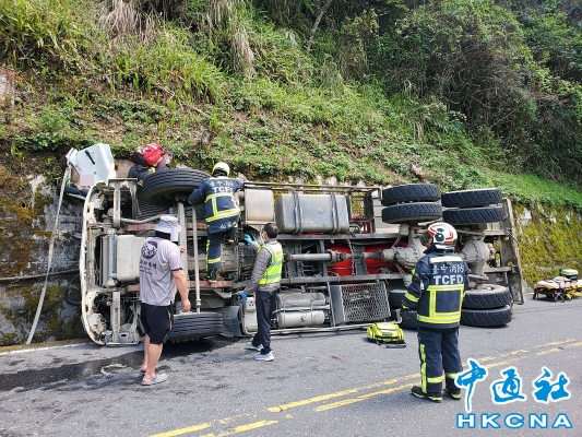 台灣台8線一混凝土車翻覆