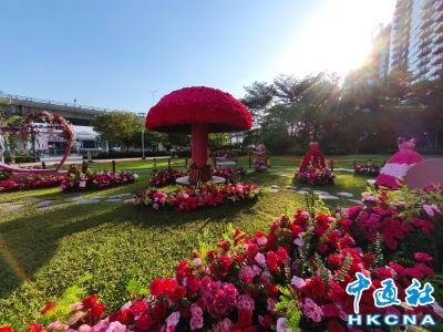 香港盛夏裝飾“我愛花花”玫瑰園