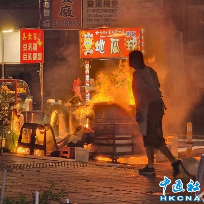 台灣台南永康夜市攤突起火 經營者手腳燒傷