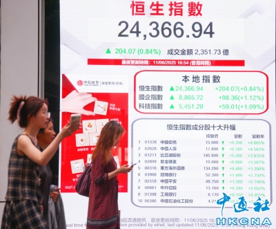 香港恒生指數漲204點 報24366點