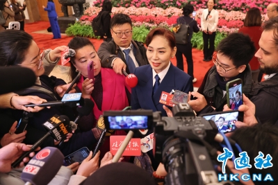 (全國兩會)鄺美雲在開幕會後接受媒體採訪