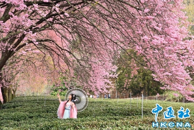 南投武陵農場櫻花盛開 吸引遊客拍照打卡