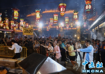 香港黃大仙祠迎“頭炷香” 善信提前抵達祈福馬年