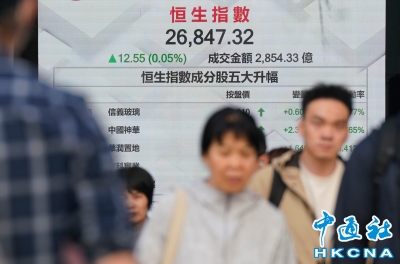 香港恆生指數升12.55點 報26847.32點