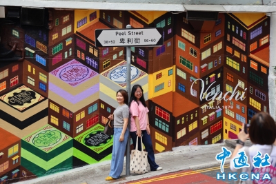 香港中環舊城壁畫成打卡熱點