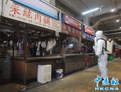台灣台中市對市場肉品攤商區域進行清潔消毒作業